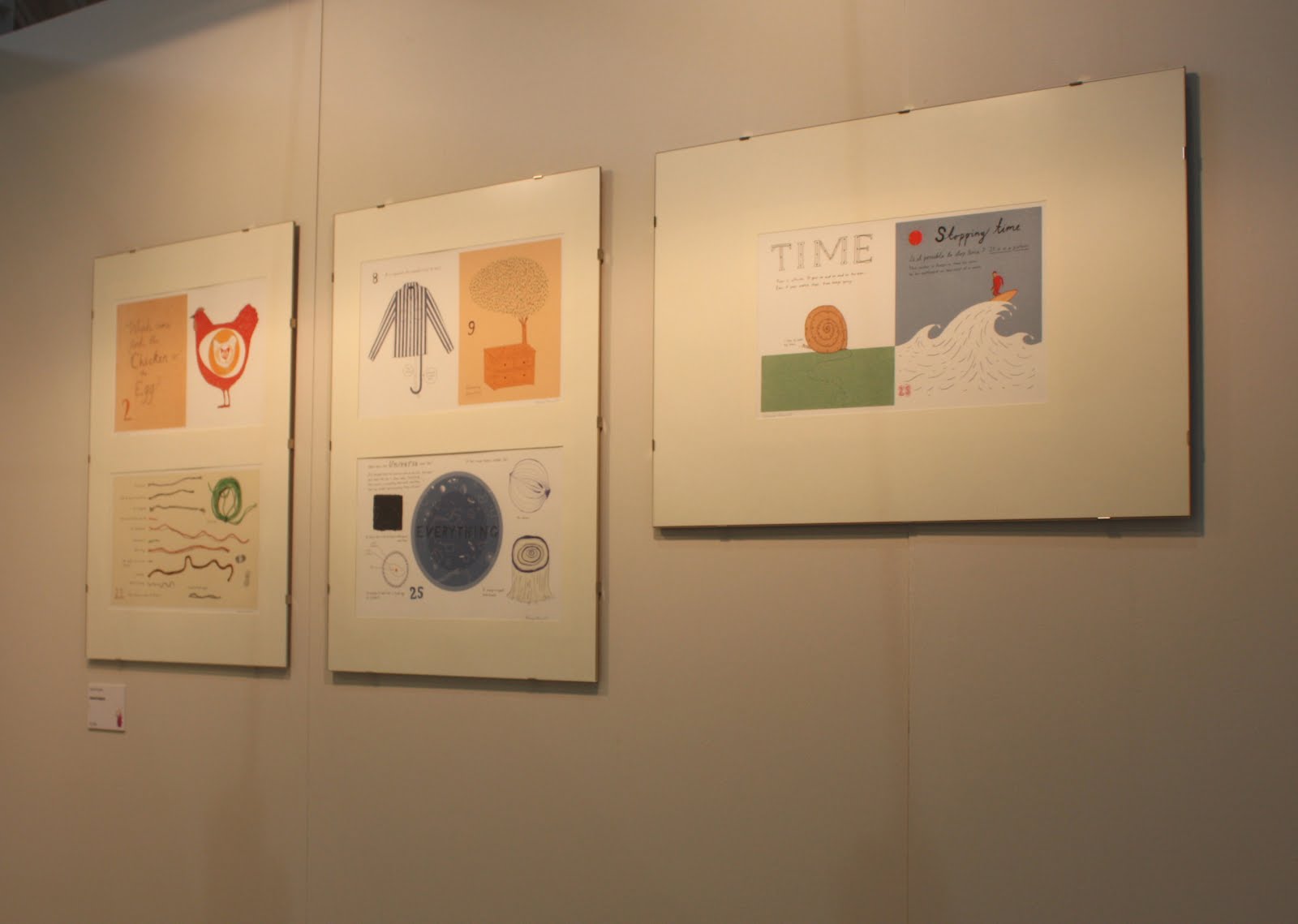 Last week I was at the Bologna book fair where I had a busy but great time as usual. A huge range of inspiring and beautiful books and illustrations, lots of nice people and of course delicious food and sunshine! This year I was very happy to have some work selected for the Illustrator's exhibition, and also rather shocked to be nominated for the Astrid Lindgren award. The award is anounced live from Sweden during the fair, and went to Dutch author Guus Kuijer. Here's some pics of the exhibition and fair, as well as the temporary book shop in Piazza Maggiore, with my chicken or egg illustration above the doorway!
